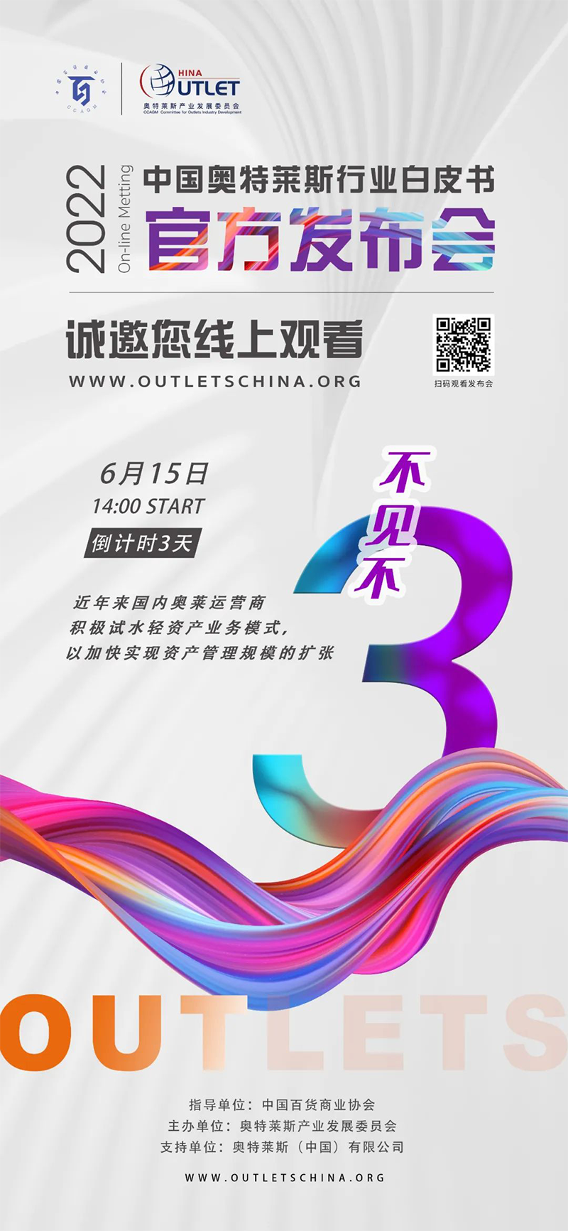 2022年6月15日14:00,《2022年中國奧特萊斯行業(yè)白皮書》線上發(fā)布會(huì)即將正式開始,本次發(fā)布會(huì),將對(duì)國內(nèi)零售市場及奧萊產(chǎn)業(yè)引入中國20年發(fā)展的經(jīng)驗(yàn)及機(jī)遇做出全新解讀。
