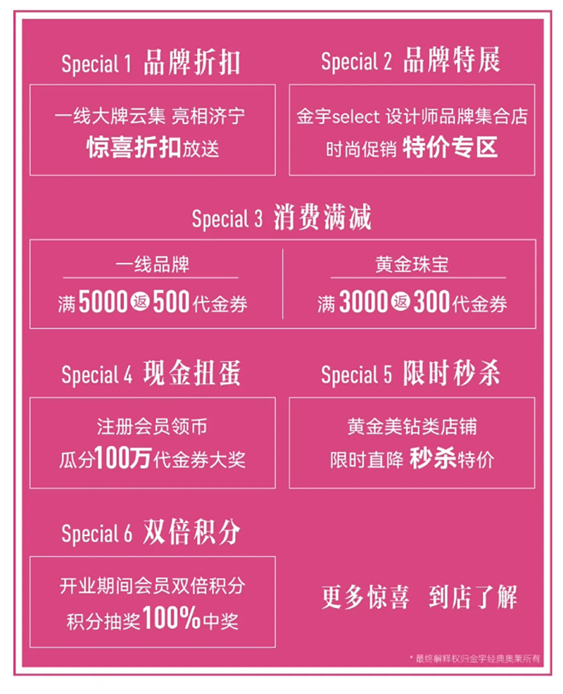 隨著金宇經(jīng)典奧萊的開(kāi)業(yè),濟(jì)寧國(guó)際生活節(jié)正式拉開(kāi)序幕。以回饋濟(jì)寧人為目的,制造濟(jì)寧人自己的時(shí)尚地盤(pán),4.29-5.30盛惠不止狂歡不停,覆蓋五一黃金周,推出大量?jī)?yōu)惠活動(dòng),時(shí)尚秀場(chǎng)、live演出、驚喜折扣、雙倍積分、現(xiàn)金扭蛋等,回饋廣大市民朋友!