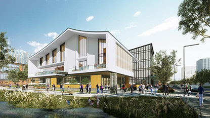 雄安奧特萊斯位于雄安·電建智匯城東區(qū)商業(yè)軸線核心位置,臨近城市發(fā)展主干道,其總建筑面積約13萬㎡,規(guī)劃經(jīng)營面積約9.6萬㎡。項(xiàng)目布局分為2大功能組團(tuán),4大主題分區(qū)。