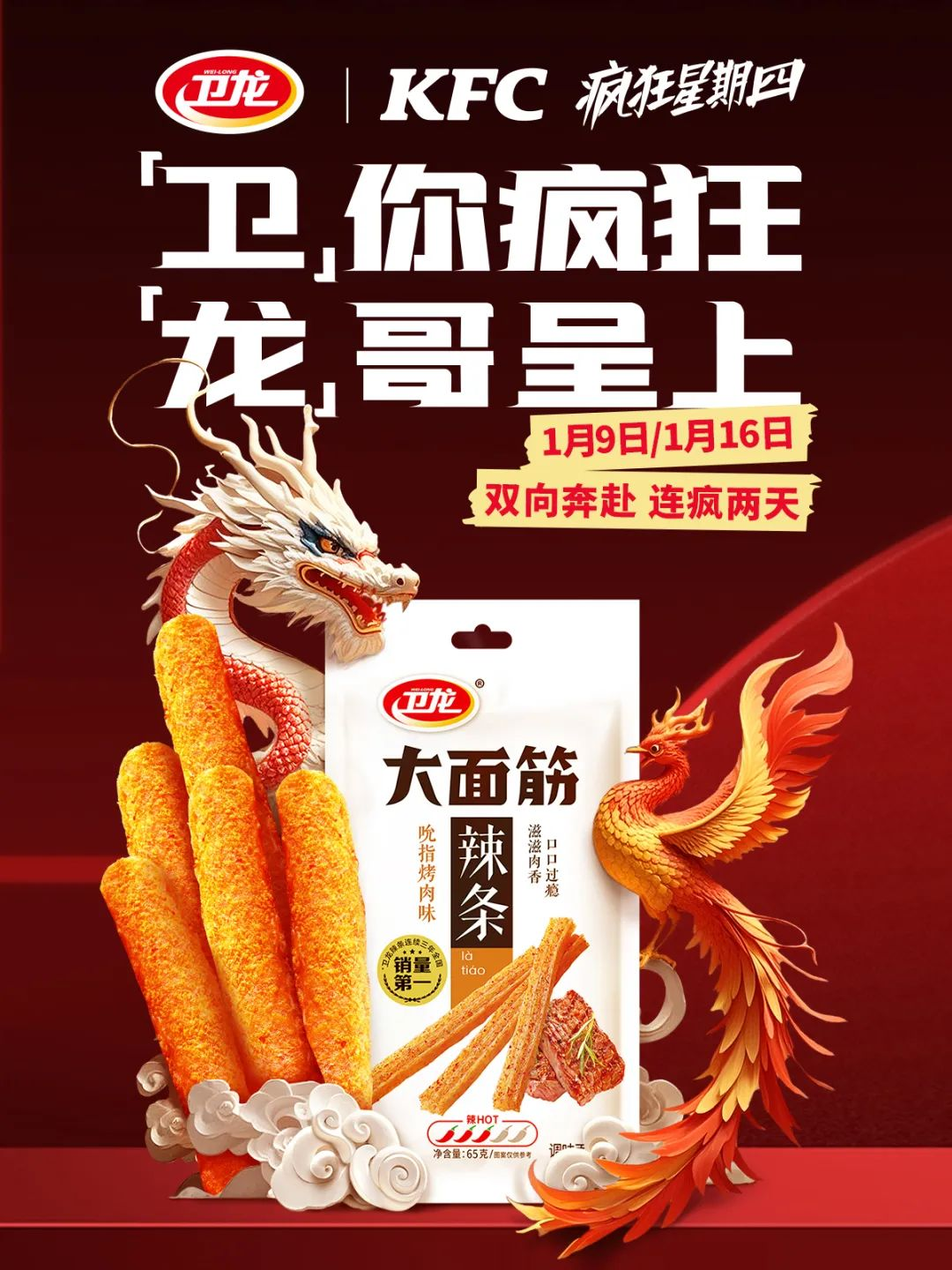 隨著2025年的到來(lái),衛(wèi)龍攜手肯德基推出了“瘋狂星期四”活動(dòng),給營(yíng)銷界帶來(lái)了一次不小的沖擊。此次衛(wèi)龍與肯德基的聯(lián)名合作,更是將“瘋狂”的概念發(fā)揮到了極致。在聯(lián)名主題店內(nèi),墻壁上布滿了以“瘋狂星期四”為主題的創(chuàng)意文案,例如“瘋搭子上線,開(kāi)年就瘋辣!”和“衛(wèi)你瘋狂,龍哥呈上”等,打響2025年發(fā)瘋營(yíng)銷第一炮。