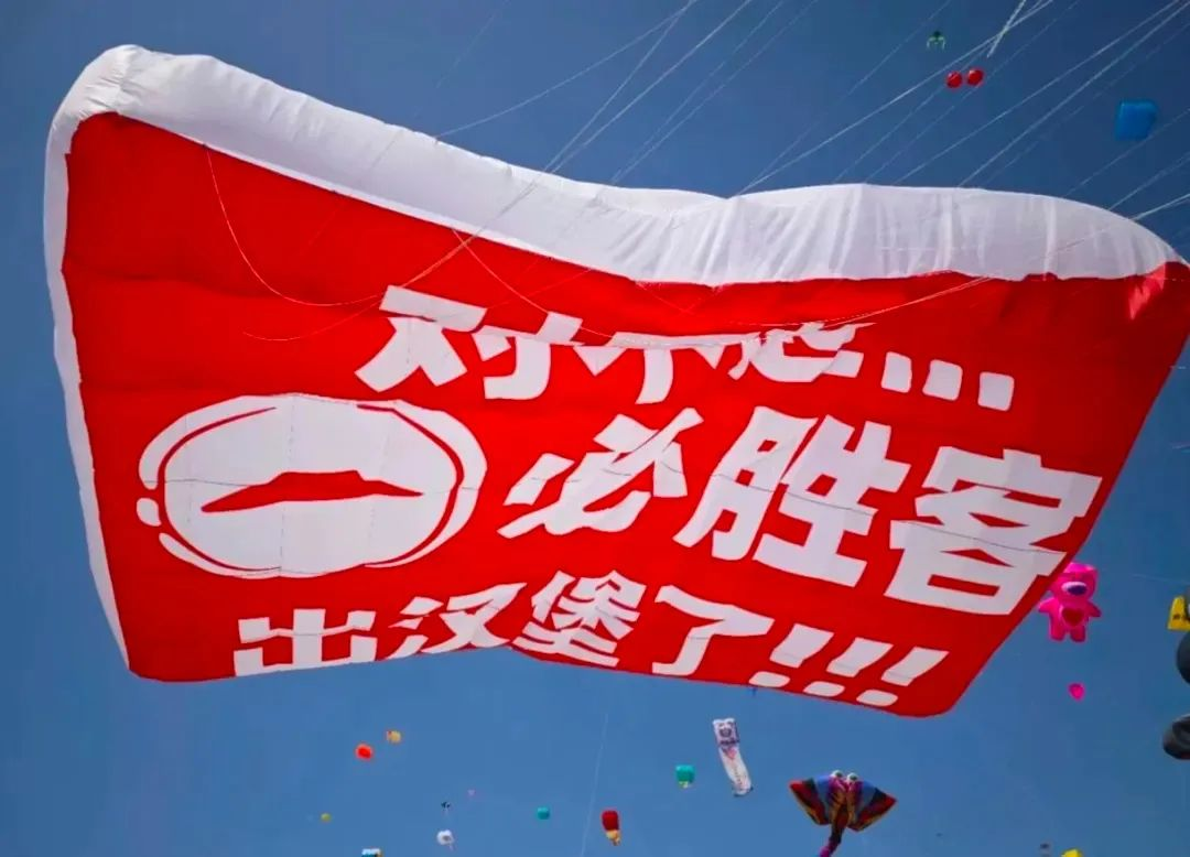 去年的風(fēng)箏節(jié),眾多品牌紛紛參與“發(fā)瘋營(yíng)銷”的浪潮,將這一傳統(tǒng)活動(dòng)推向了新的高峰。在風(fēng)箏節(jié)期間,淘寶連續(xù)兩年推出的巨型“放屁”風(fēng)箏成為焦點(diǎn)。這種打破常規(guī)、充滿娛樂(lè)性的廣告方式,不僅吸引了眾多目光,更讓年輕人在歡笑中釋放了壓力。而必勝客則通過(guò)簡(jiǎn)潔的大字報(bào)形式,宣布“必勝客推出漢堡”,這種直接而簡(jiǎn)單的營(yíng)銷手段,同樣給人留下了深刻的印象。
