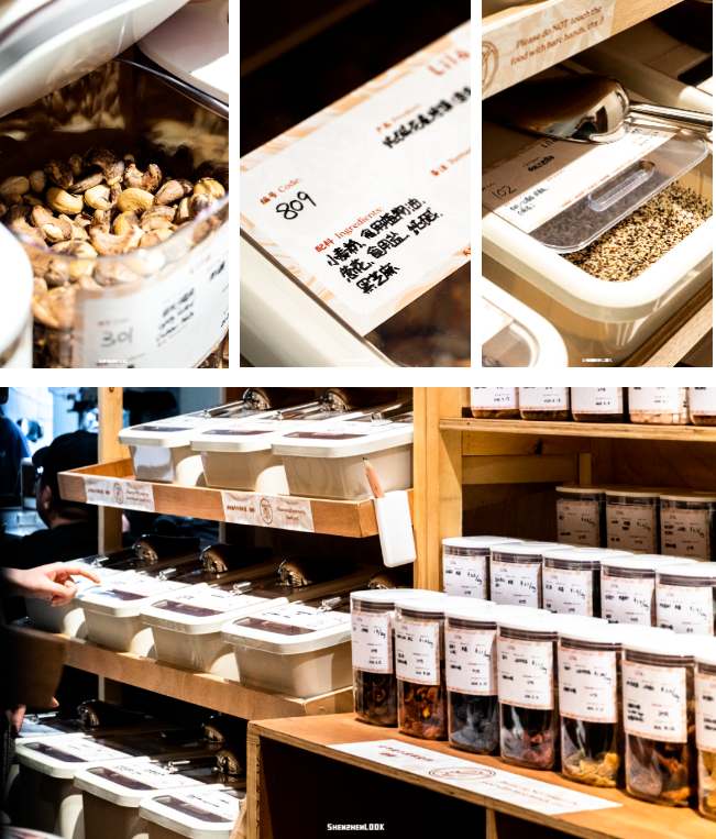 據(jù)了解,門店貨架上的瓶瓶罐罐整齊碼放,客人可以自行挑選或diy不同的搭配,整個(gè)過(guò)程好玩又解壓。Lila主要賣有機(jī)干糧、果干以及無(wú)添加零食,像凍干山楂、無(wú)花果、無(wú)糖棉花、藜麥等,目前大約有100多種可選。